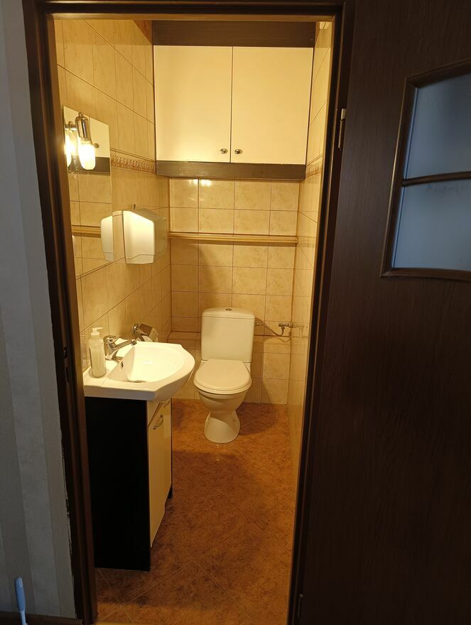 • Funkcjonalny układ: Dużym atutem jest osobna łazienka i WC, co znacznie ułatwia życie większej rodzinie.