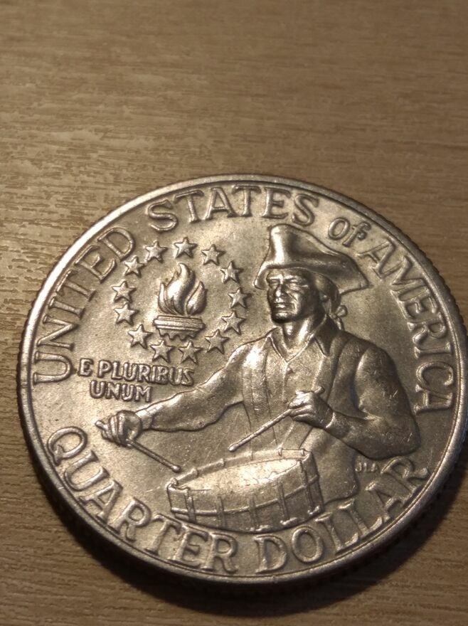 Sprzedam:monetę o nominale 25 centów (Quarter Dollar - ćwiartka Dolara), moneta okolicznościowa wybita na 200-setną rocznicę niepodległości USA 1776-1976.