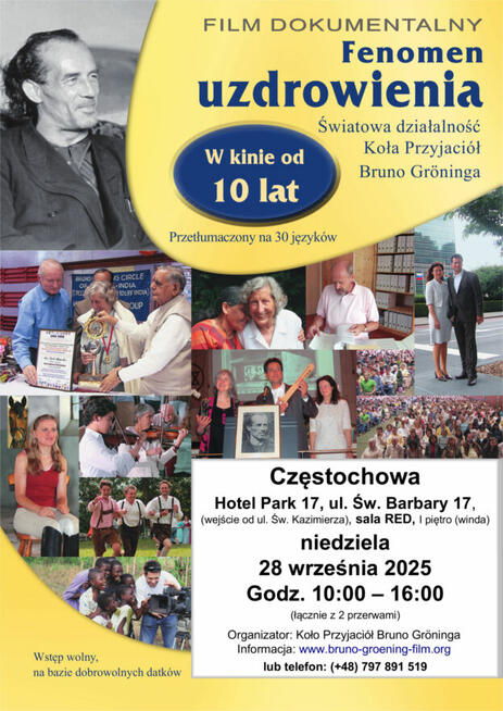 Otwarta projekcja filmu dokumentalnego FENOMEN UZDROWIENIA - Światowa działalność Koła Przyjaciół Bruno ...