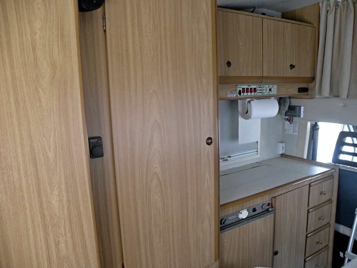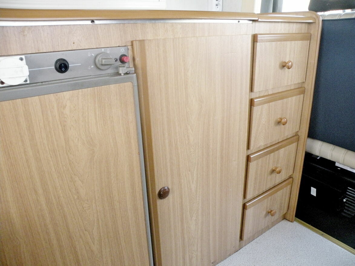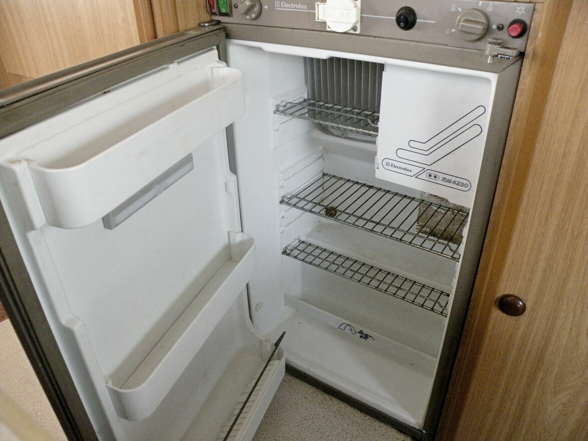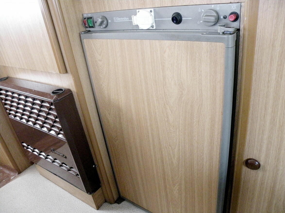 - lodówka Elektrolux Caravan RM 4230 gaz/12V/220V z wymuszonym chłodzeniem radiatorów (wentylatory sterowane cyfrowym regulatorem temperatury)