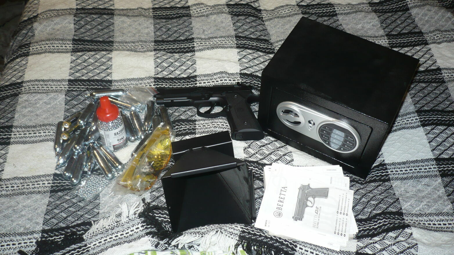 wiatrowka pistolet replika beretty czarny duzo naboi co2 mnostwo kulek stalowych kulochwyt iduzo tarcz+sejf na zamek szyfrowy bez pozwoleniaSprawdź zainteresowanie tym ogłoszeniem